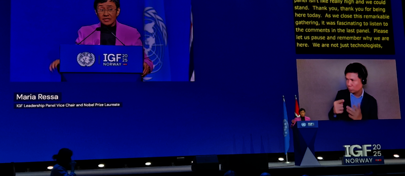 Das IGF 2025, an denen 3.344 Menschen vor Ort sowie 6.000 online teilgenommen haben, wurde mit einer Abschlusszeremonie beendet, die durch eine Rede der Friedensnobelpreisträgerin Maria Ressa besonders gewürdigt wurde. Sie verwies auf das Recht der Kinder auf Schutz und betonte dann, dass die Rechenschaftspflicht der Plattformen keine Zensur sei, sondern Sicherheit bedeute. Es gehe um die Wiederherstellung des Immunsystems unserer Demokratie. Sie rief alle Beteiligten dazu auf, für menschliche Handlungsfähigkeit zu kämpfen. Algorithmen, die unsere schlimmsten Impulse verstärken, seien nicht unvermeidlich; sie seien eine Wahl, und wir könnten uns für andere Werte entscheiden. Werden die digitalen Rechte universell sein oder ein Privileg der Wohlhabenden, fragte sie abschließend an alle Teilnehmenden gewandt und verwies damit auch auf die immer noch bestehende digitale Kluft.