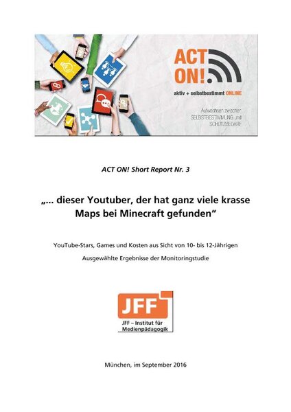 Für die Smartphone-Anfänger im Alter von 10 bis 12 Jahren spielen Spiele-Apps und Youtube-Stars eine noch größere Rolle als für die 12- bis 14-Jährigen. Ihren YouTube-Lieblingen folgen die Kinder in weitere Online-Netzwerke, wie Twitter oder Snapchat und lassen sich Tipps und Tricks in Bezug auf Games zeigen. Sie erweitern dadurch ihr Medienrepertoire, stoßen jedoch auch auf unerwartete Stolpersteine und hinterfragen nur sehr selten, inwieweit sie durch die Youtuberinnen und Youtuber stets gut beraten sind. Dabei sind sie durchaus auf der Hut, vor allem wenn es um den Persönlichkeitsschutz, technische Risiken und Kosten geht. Allerdings führt sie gerade die Motivation Kosten zu vermeiden so manches Mal in risikobehaftete Abwege und auch in Bezug auf andere Risiken steht es um ihr Medienwissen nicht immer zum Besten.