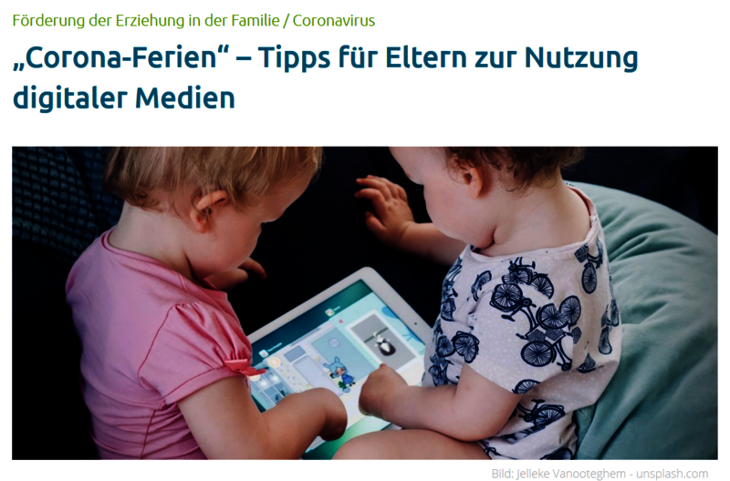 Viele Eltern stehen vor dem gleichen Problem: Ihre Kinder müssen zuhause beschäftigt werden. Tablet und Smartphone mit Angeboten für Kinder bieten Eltern einen Ausweg aus dem Dilemma. Doch wirft der Griff zu Fernbedienung oder Spiele-App bei vielen Müttern und Vätern Fragen auf: Wie oft, wie lange und mit welchen Inhalten sollten die Kids digitale Medien nutzen? Das Team von „Medienerziehung im Dialog von Kita und Familie“ gibt praktische Empfehlungen, wie Familien gut durch die Corona-Zeit kommen - mit und ohne Medien.
