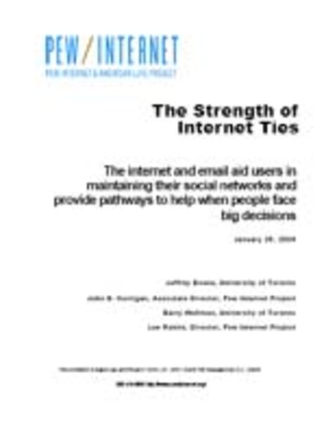 Die Pew-Studie "The Strength of Internet Ties" (die Stärke der Internet-Bande) von Januar 2006 knüpft an eine der großen Diskussion über die Wirkung des Internet auf Beziehungen mit Freunden, Verwandten, Nachbarn und Kollegen an. Kritiker des Internet befürchten, dass es die Menschen von authentischen und reichhaltigeren Beziehungen entfremdet.