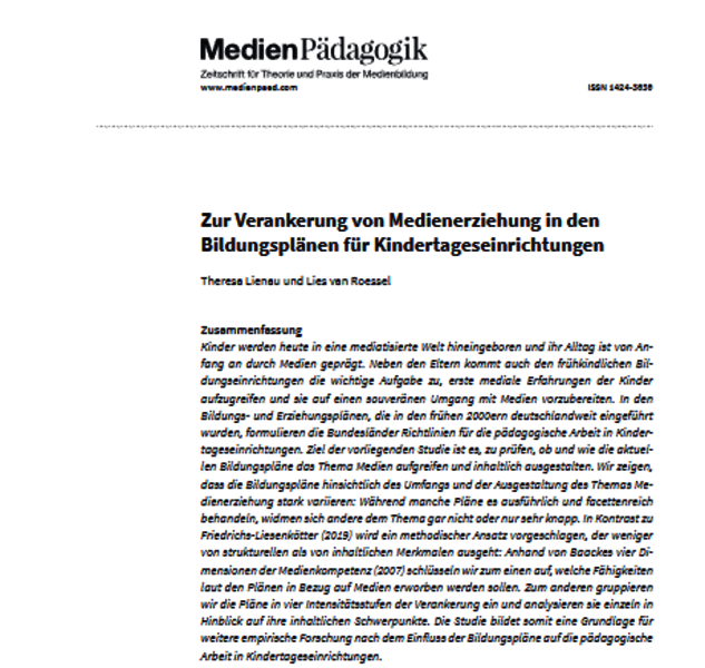 Zur Verankerung von Medienerziehung in den Bildungsplänen für Kindertageseinrichtungen